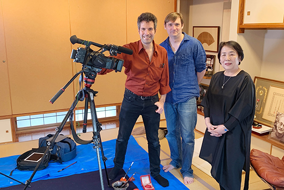 フランスから来たAlexandreさんです。飼っていた犬を思い出しながら書の体験をしました。通訳:アランロワ