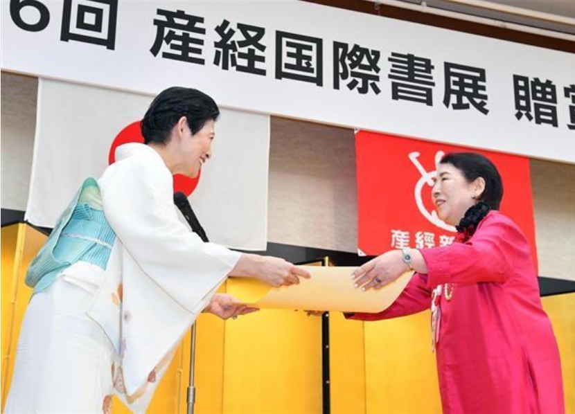 高円宮妃殿下より最高賞「高円宮賞」を授与される渡邉麗(誠心社会長・産経国際書会理事長代行)